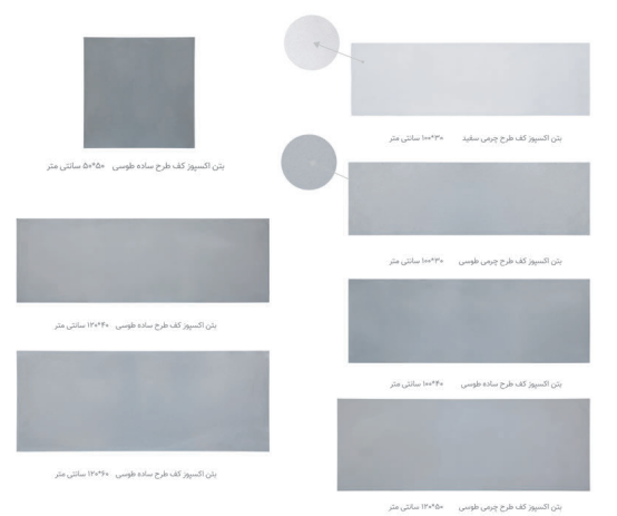 کفپوش های سیمانی اکسپوز در طرها و سایزهای متنوع و با توجه به سلیقه معماری پروژه های مختلف تولید و عرضه میگردد.